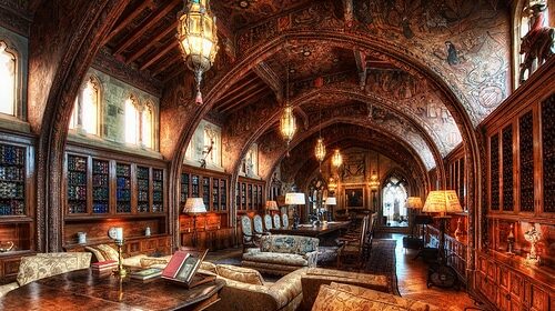 Steele magnate Andrew Carnegie used some of his vast millions to build a 64-room mansion located on 5th Ave near Central Park in New York City. Among its 64 rooms were Carnegie’s private library and study where he would spend his mornings either alone or with his personal secretary. He used his library to receive applicants seeking a piece of his philanthropic treasure chest and his study to determine which ones would get funds. The rooms were decked out in typical Gilded Age furnishings- dark hand-carved wood, plush furniture, and decorative ceilings. Along the walls of both rooms were stenciled Carnegie’s favorite inspirational sayings like “The Kingdom of Heaven is within you.” It’s pretty amazing what sort of man room you can build when you’re the richest guy in the world.
