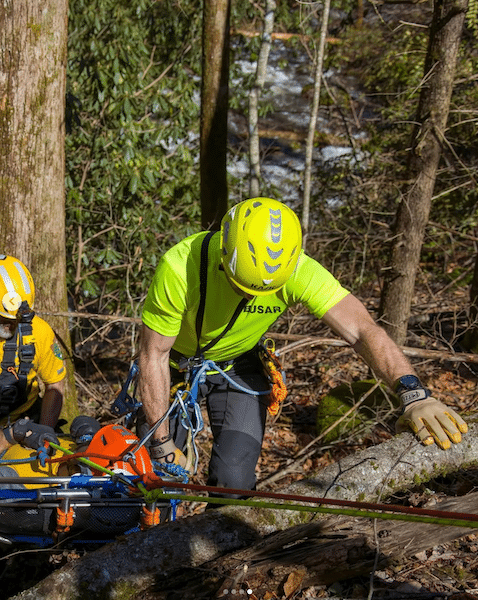 If you break your leg while hiking in the Smokies, chances are Andrew and his crew are the ones hauling you out. They’ll do it whether it’s raining, snowing, dark, steep, or completely off-trail. And carrying an injured person on a litter through rough terrain while wearing packs loaded with medical and survival gear is brutally strenuous work.