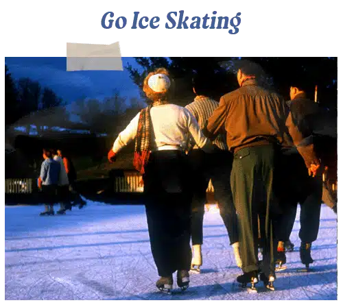 Go Ice Skating. Ice skating is like skiing in that it requires a little skill to actually enjoy it. But once you get the hang of it, it feels awesome to zoom around the rink or pond. Especially while holding hands with your best gal.